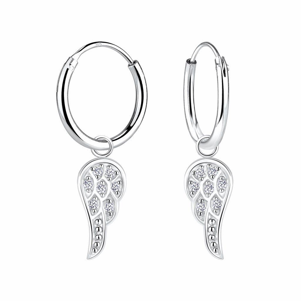 Stříbrné náušnice kroužky s andělskými křídly 12 mm