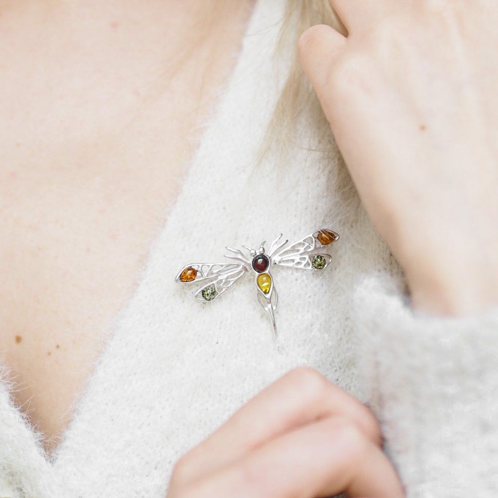 Luxusní brož s jantarem - vážka