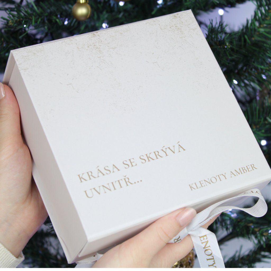 Dárkový box má šedobéžovou barvu.