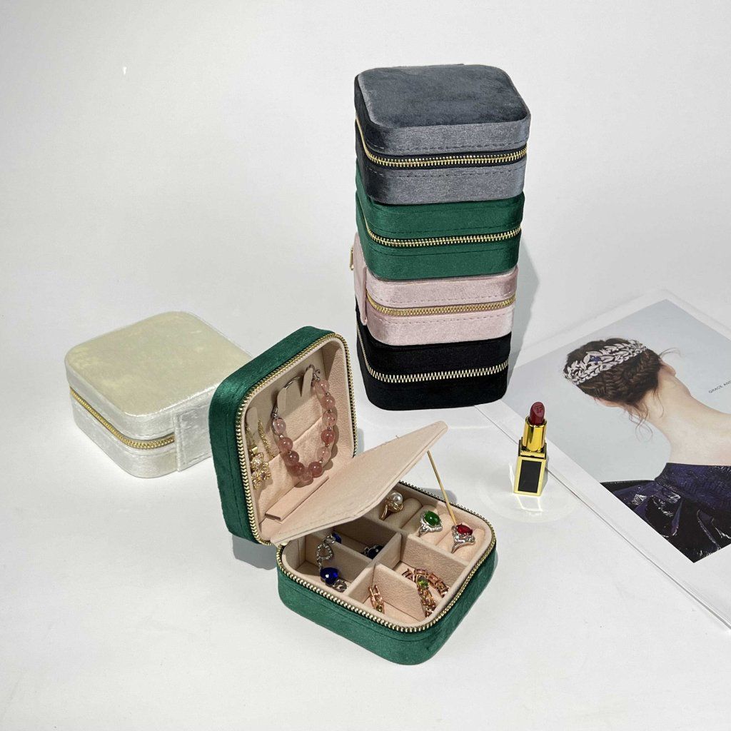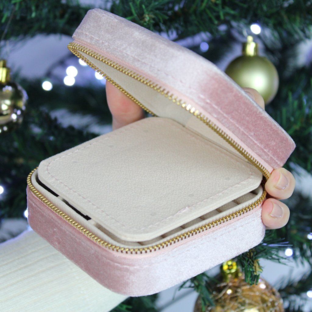 Šperkovnice se zrcátkem sametová RŮŽOVÁ