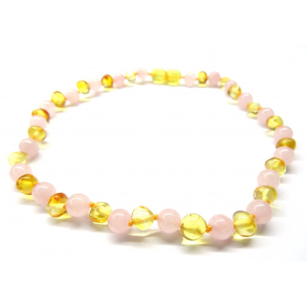 Jantarové korálky pro děti - kulaté - jantar a růženín