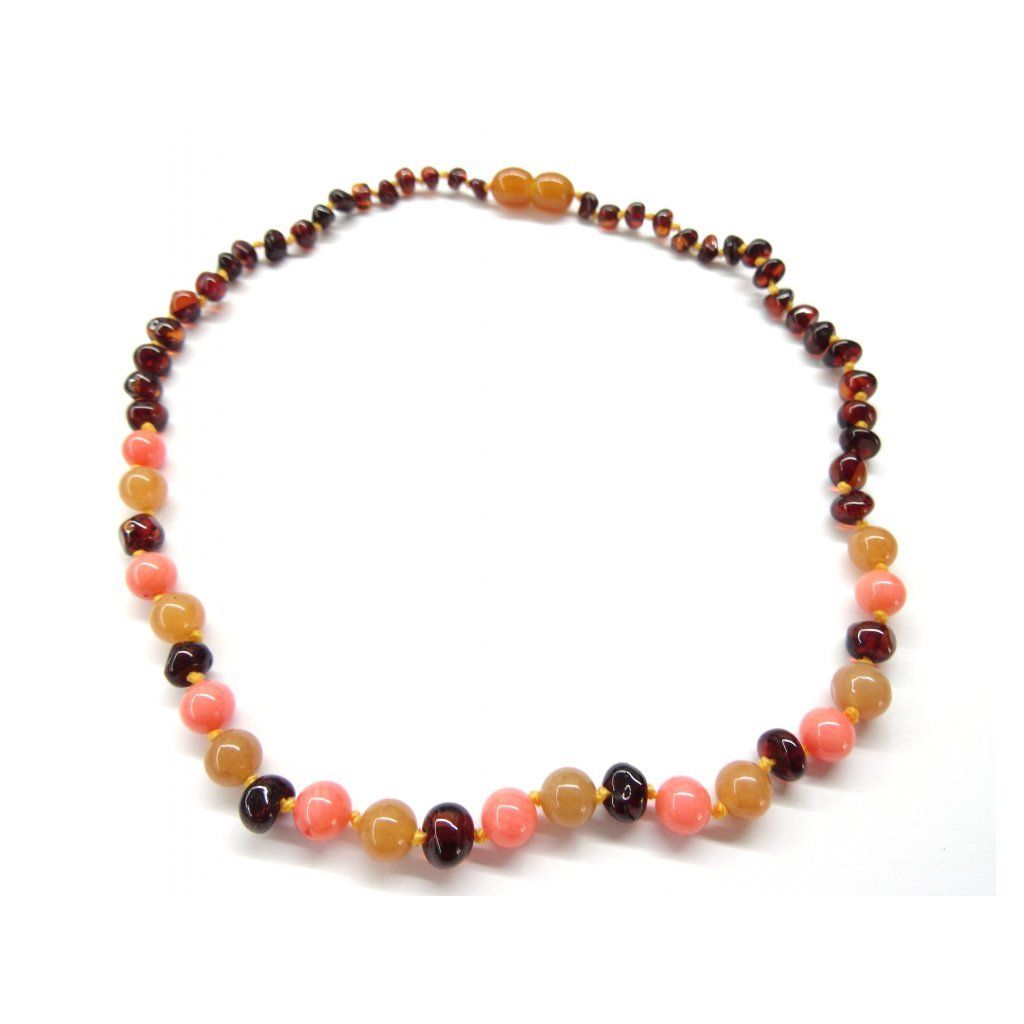 Jantarové korálky pro větší děti - jantar, avanturín a korál (38 cm)