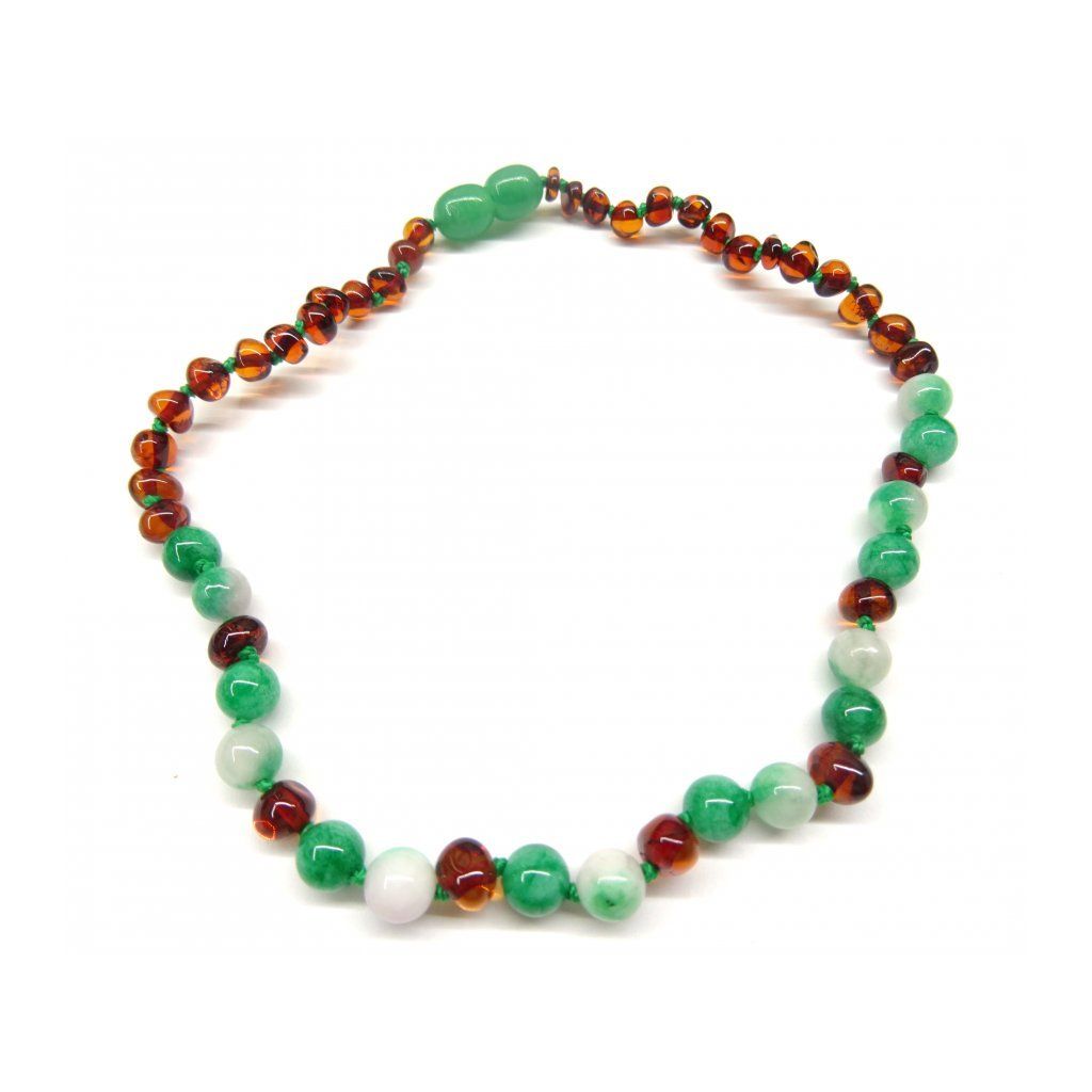 Jantarové korálky pro větší děti - jantar a zelený jadeit (38 cm)
