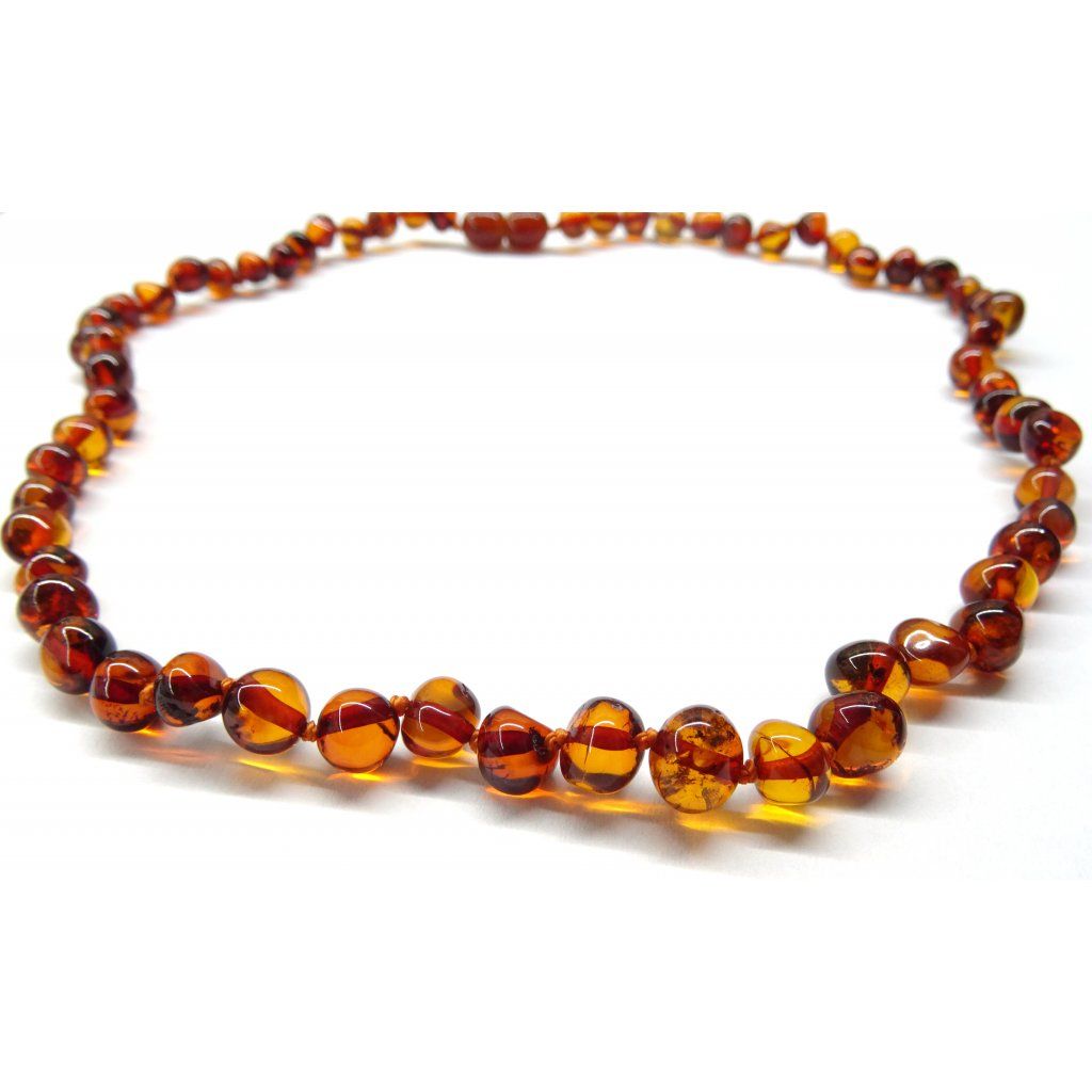 Jantarový náhrdelník - koňakové kulaté leštěné kamínky 45cm