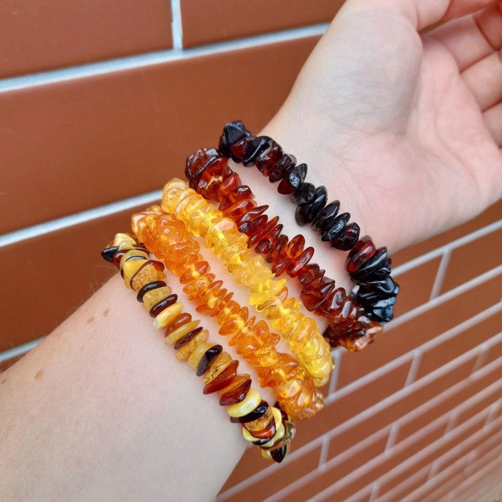 Náramek pro ženy - koňakový sekaný jantar - tmavý, 18 cm