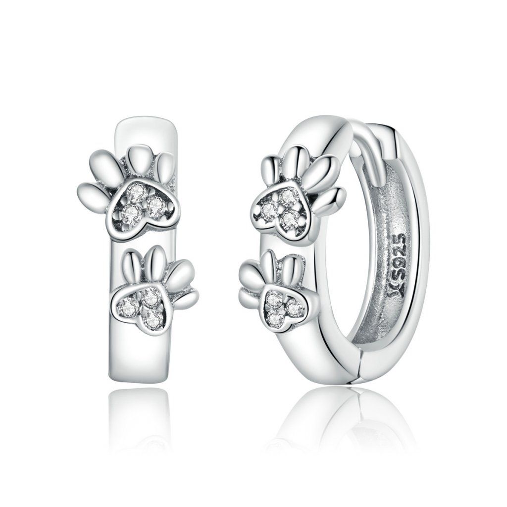 Stříbrné náušnice kočičí tlapka - čirý zirkon