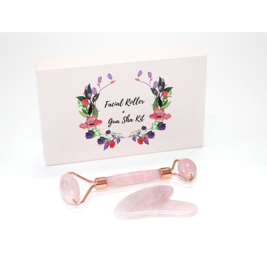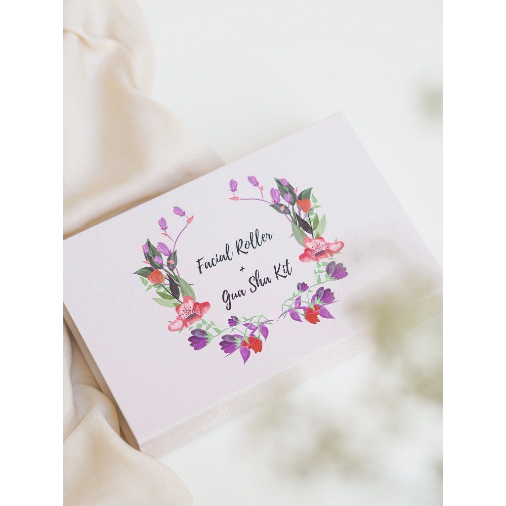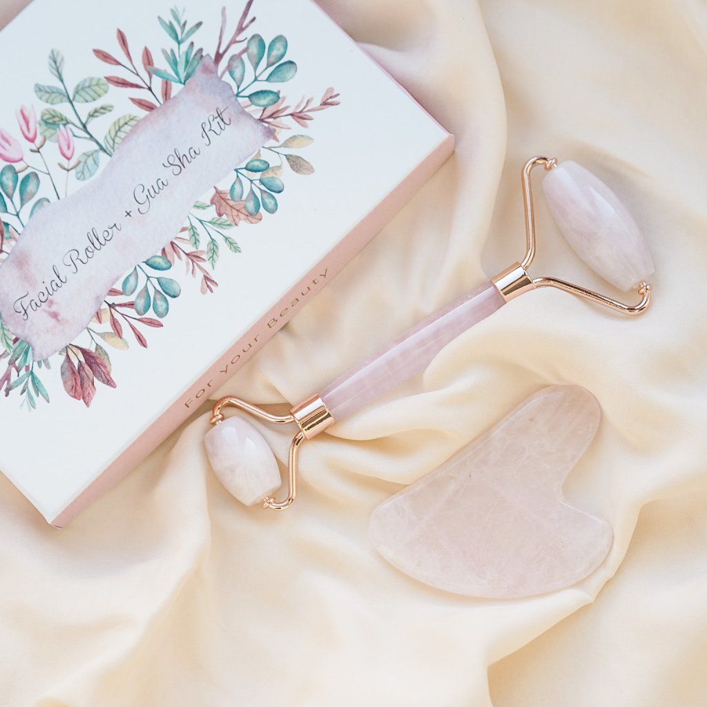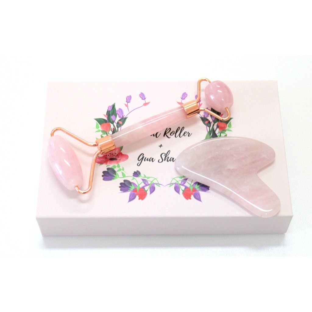 Vyberte si nádherný dárkový set- oboustranný face roller a gua-sha z růženínu, obojí navíc v nádherné dárkové kazetě.