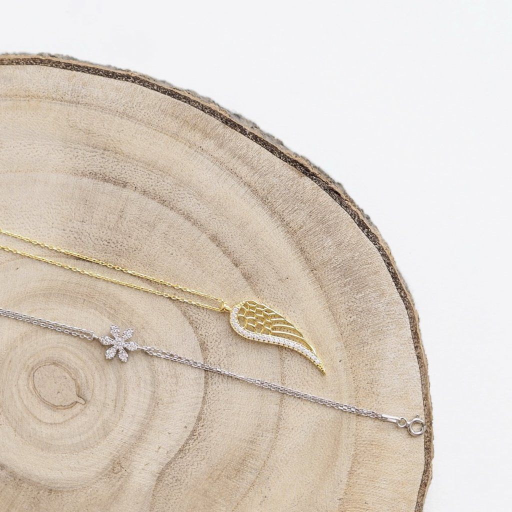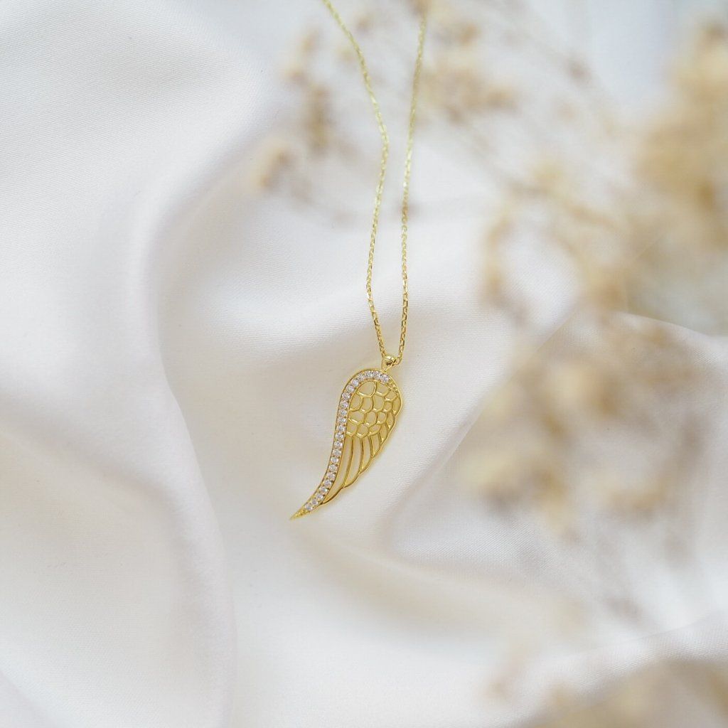 Pozlacené andělské křídlo se zirkony přívěsek včetně řetízku