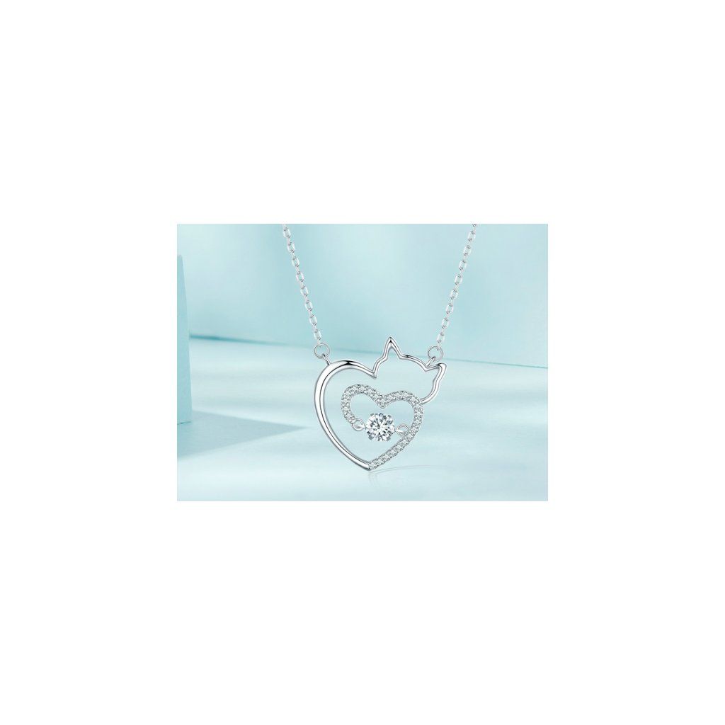 Stříbrný náhrdelník kočka se srdíčkem