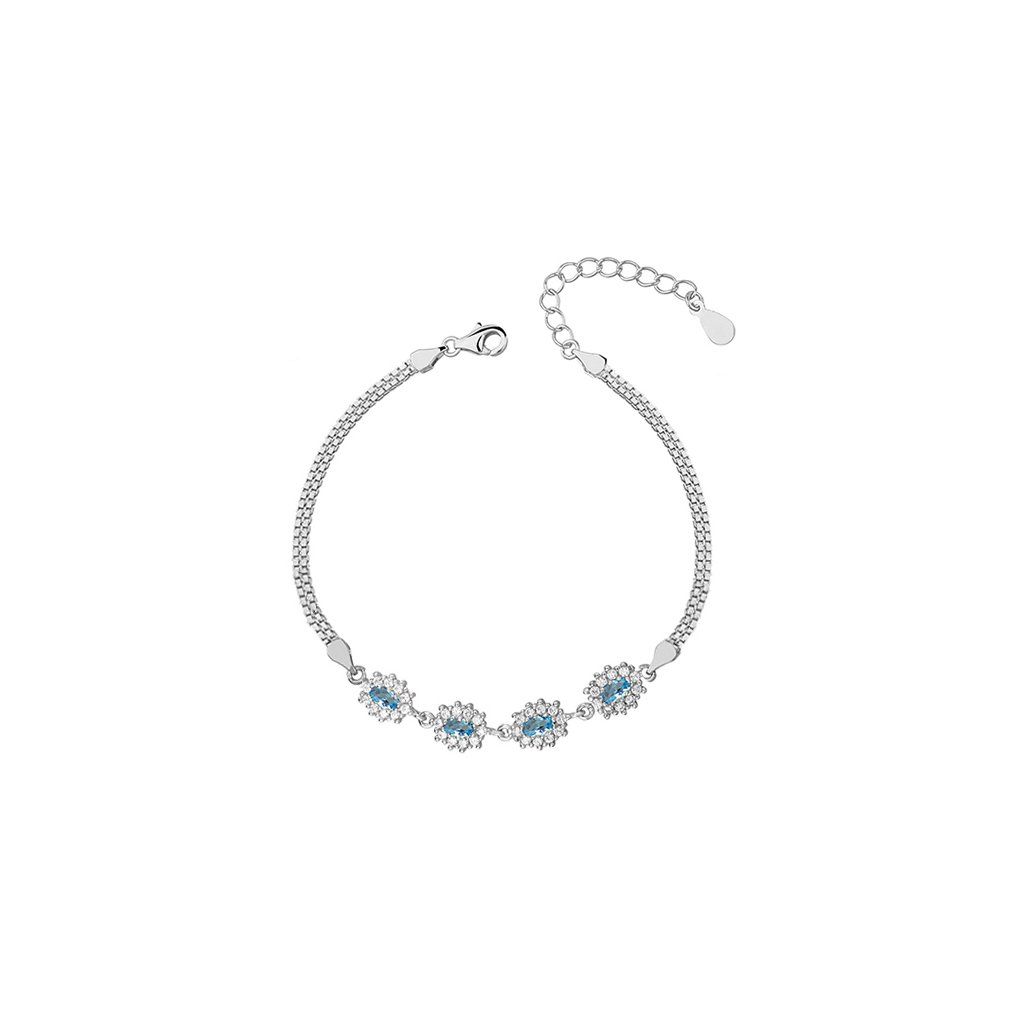Luxusní stříbrný dvojitý náramek akvamarínové zirkony