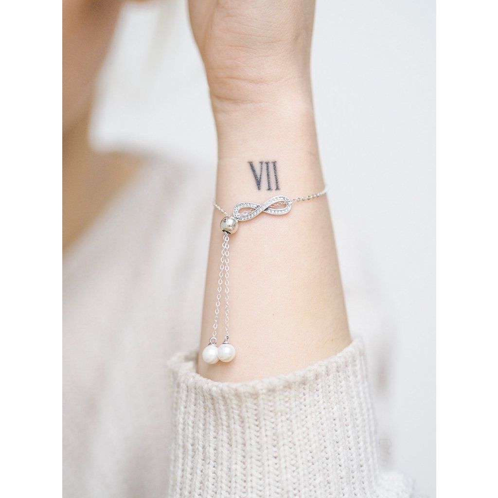 Posuvný stříbrný náramek nekonečno a perly