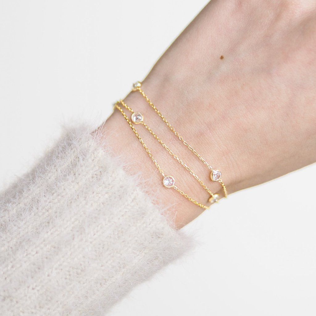 Trojitý stříbrný náramek s kapkami zirkonu - žluté zlacení