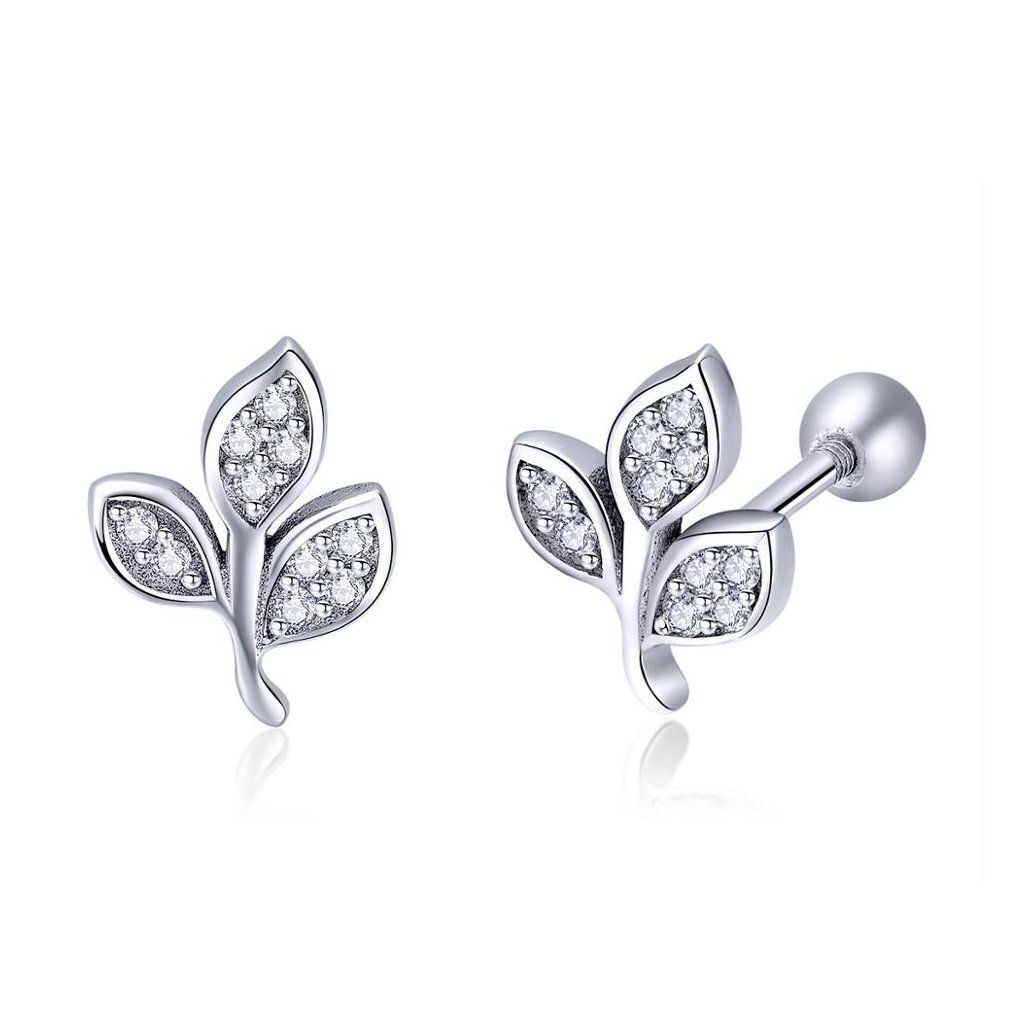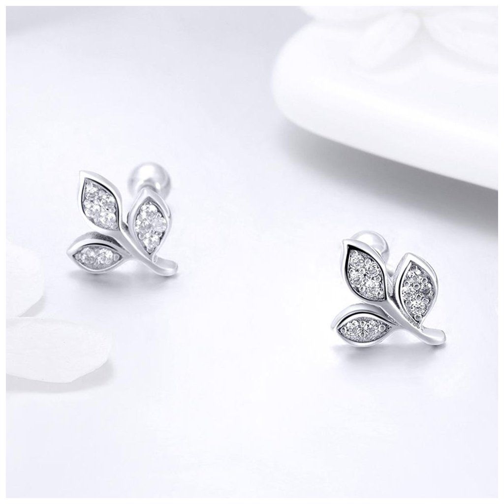 Jemné stříbrné náušnice listy se zirkony