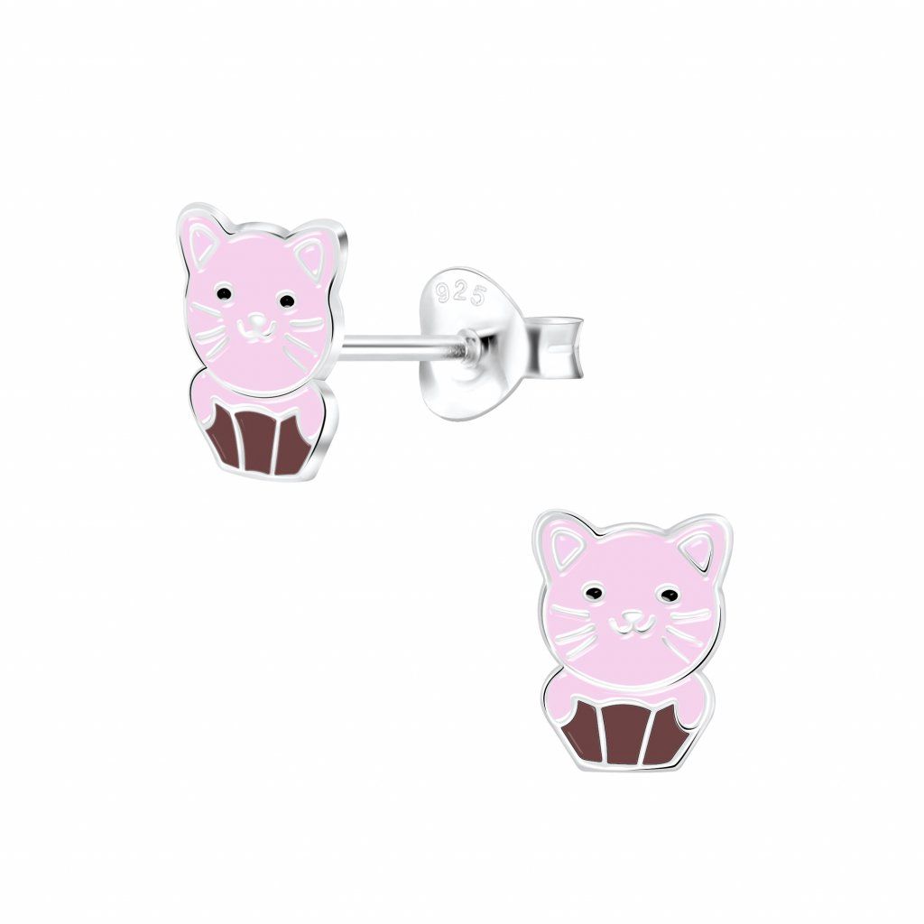 Stříbrné náušnice kočka v cupcake