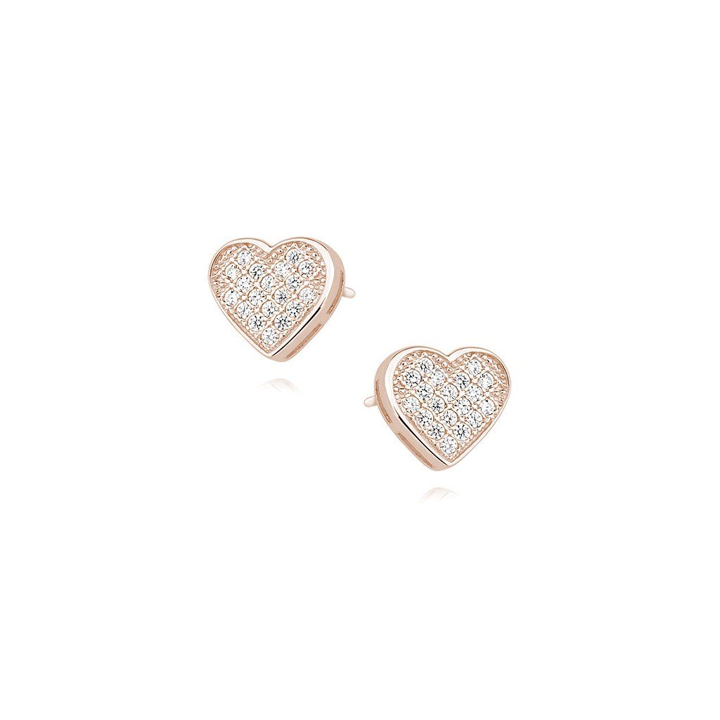 Stříbrné náušnice srdce - růžové zlacení