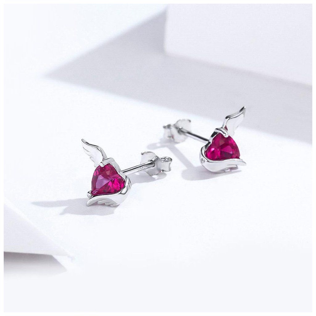 Stříbrné náušnice - srdce s andělskými křídly
