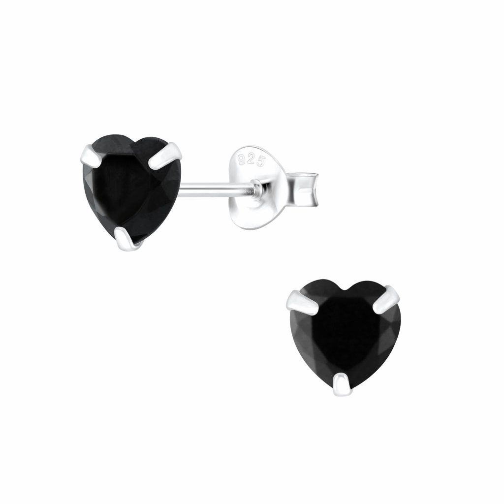 Stříbrné náušnice srdíčka 6 mm černá