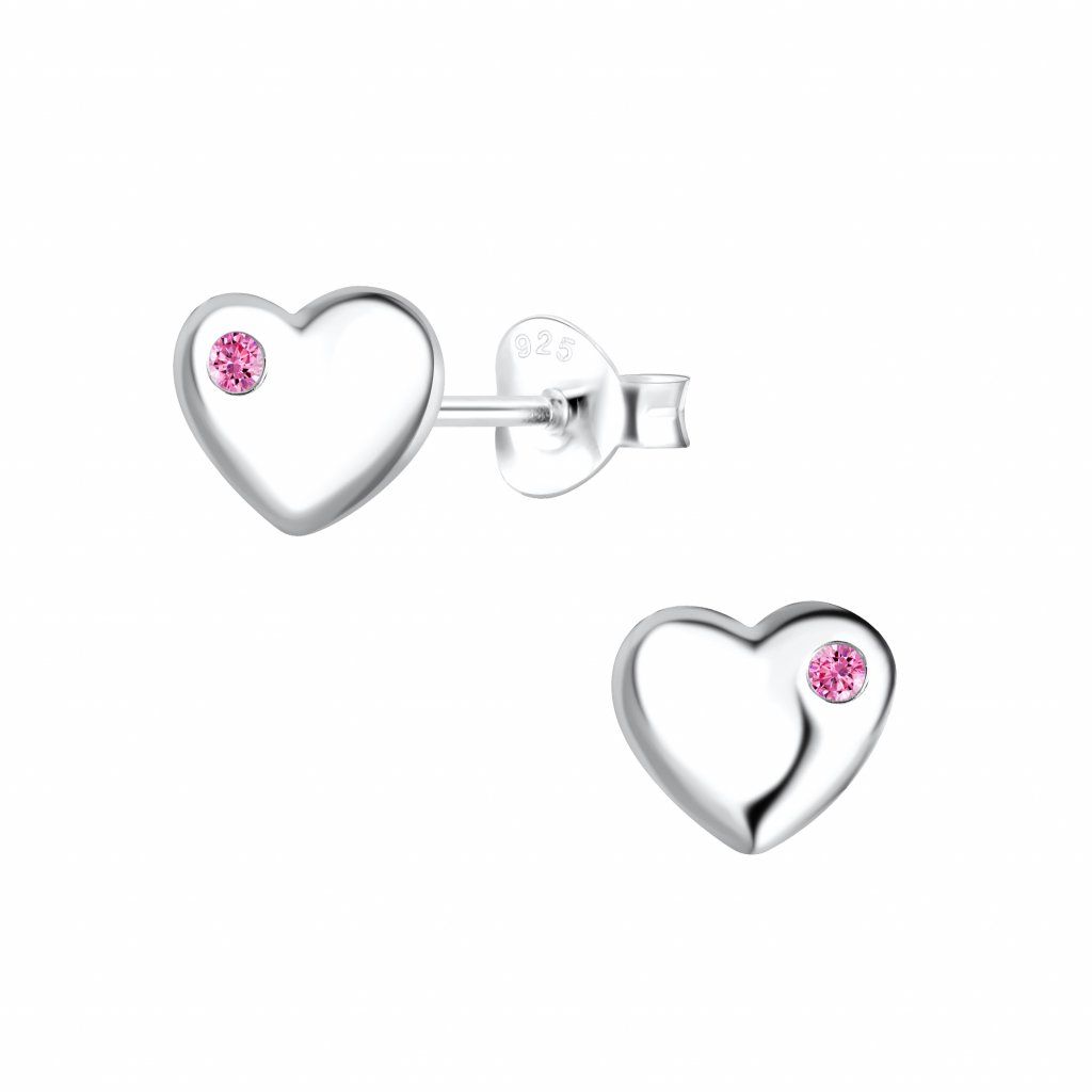 Stříbrné náušnice srdíčka s růžovým kamínkem