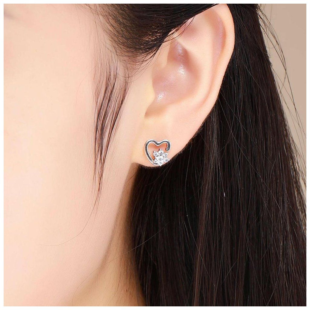 Stříbrné náušnice tlapka v srdci