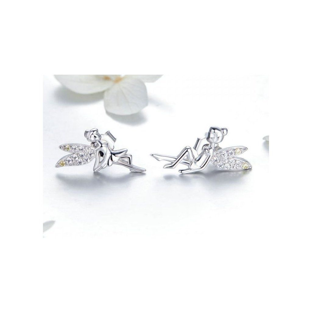 Stříbrné náušnice víly se zirkony