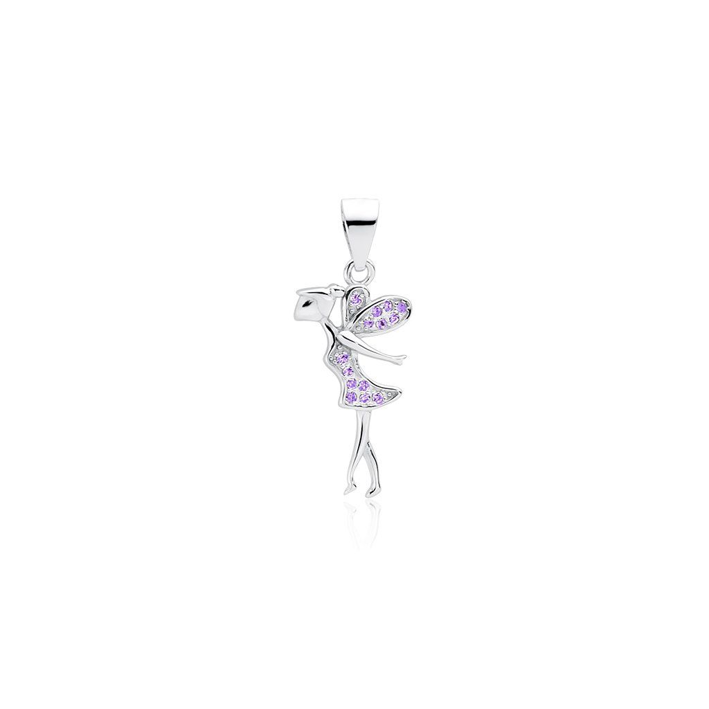 Přívěsek stříbrná víla je osázený fialovými zirkony. Krásný dáreček nejen pro malé holčičky.