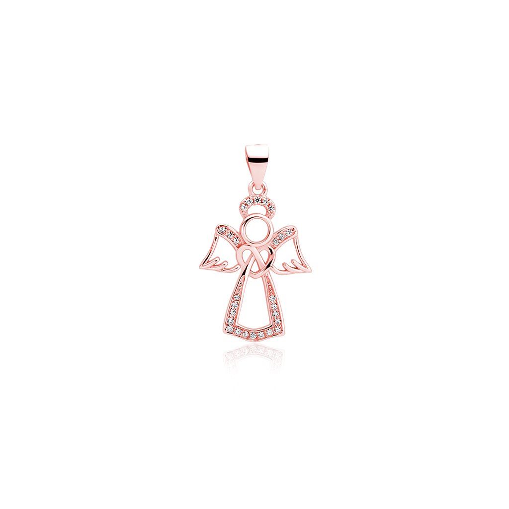 Stříbrný anděl se srdcem se zirkony - růžové zlacení