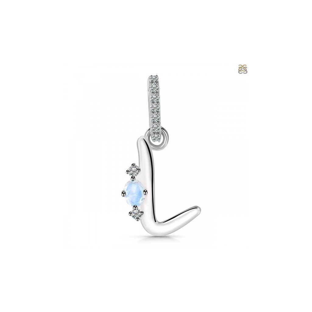 Stříbrný přívěsek písmeno L s měsíčním kamenem a topazy