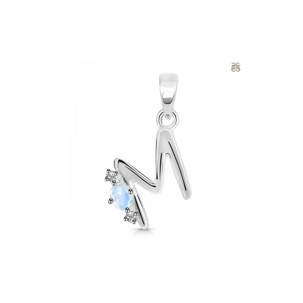 Stříbrný přívěsek písmeno M s měsíčním kamenem a topazy