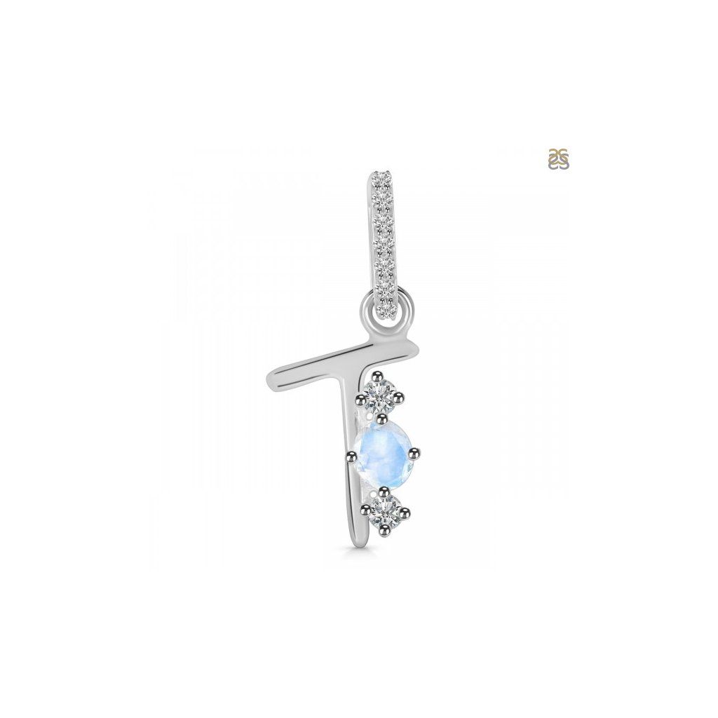 Stříbrný přívěsek písmeno T s měsíčním kamenem a topazy
