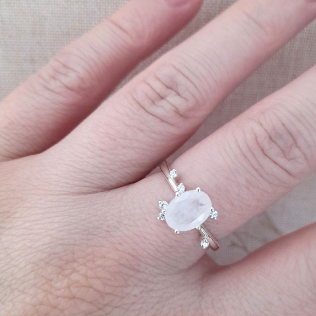 Luxusní stříbrný prsten měsíční kámen a topaz Mystic