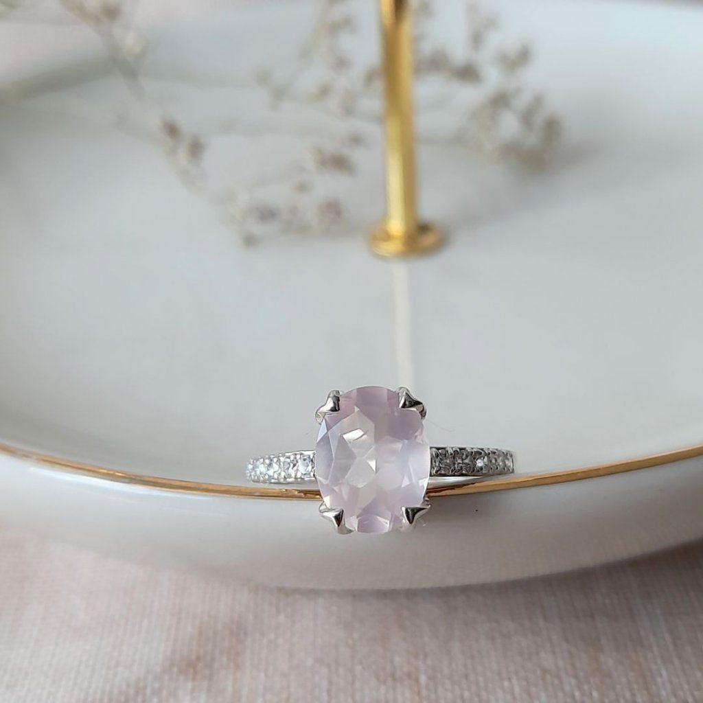 Rozměry kamenů: 9 x 7 mm (růženín) / 1,5 mm (bílé topazy).