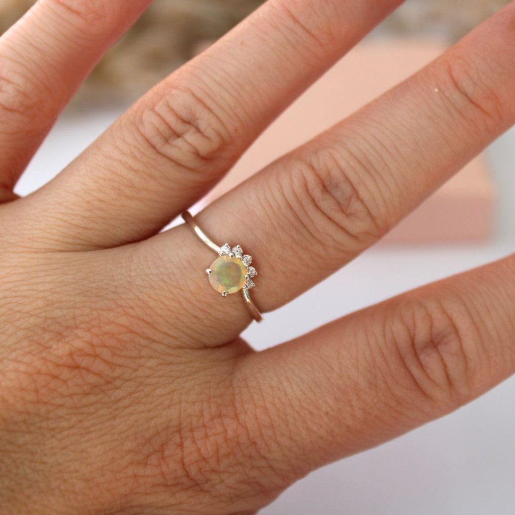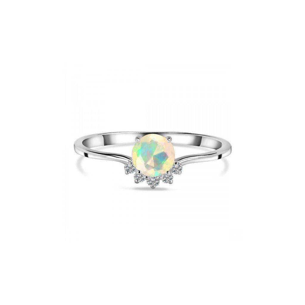 Rozměry kamenů: 5 x 5 mm (centrální opál) / 1.4 mm /1.6 mm /1.5 mm (bílé topazy).