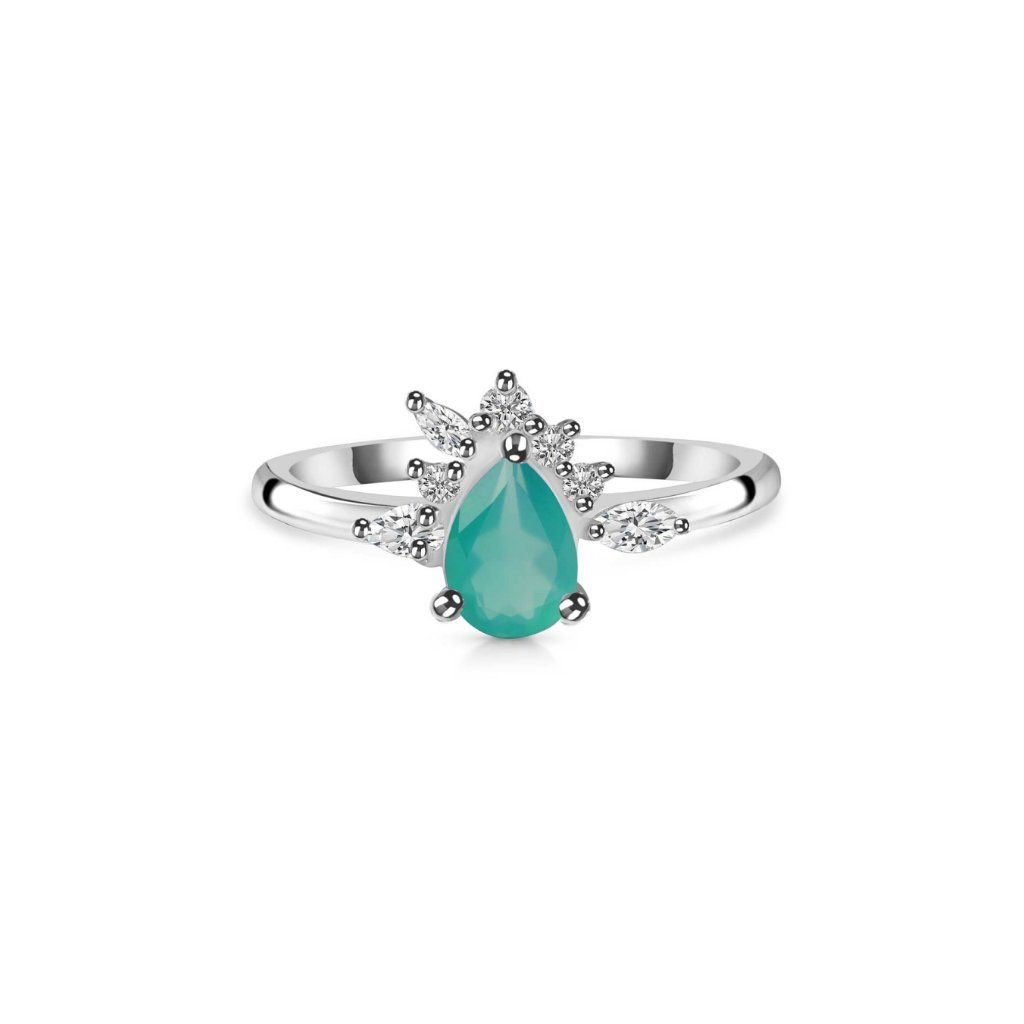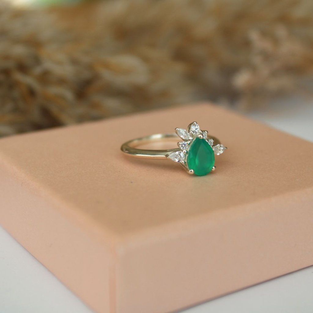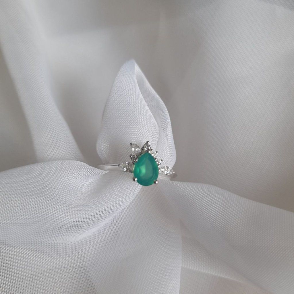 Luxusní stříbrný prsten se zeleným onyxem a topazy Bohyně