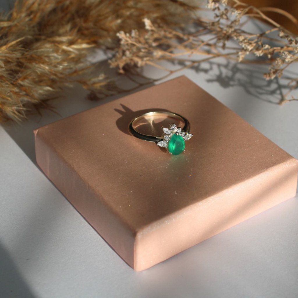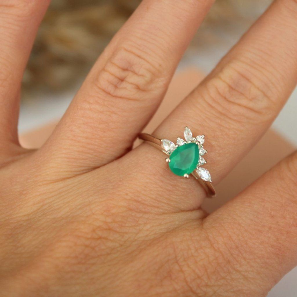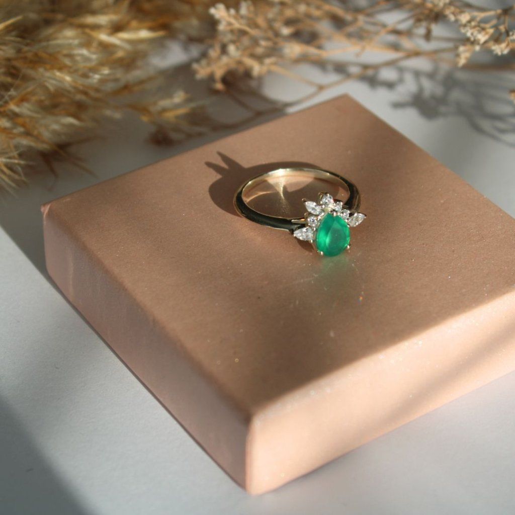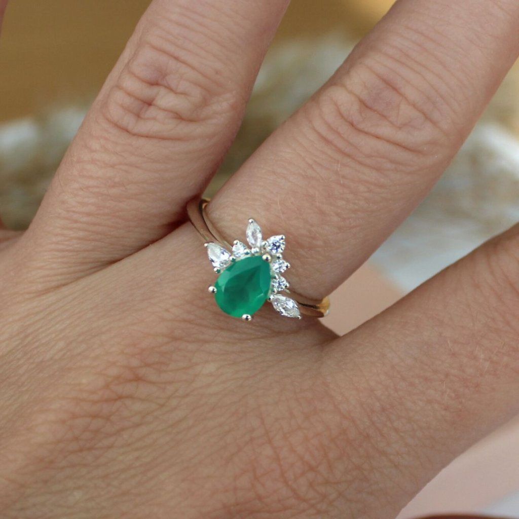 Luxusní stříbrný prsten se zeleným onyxem a topazy Bohyně