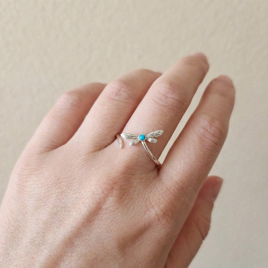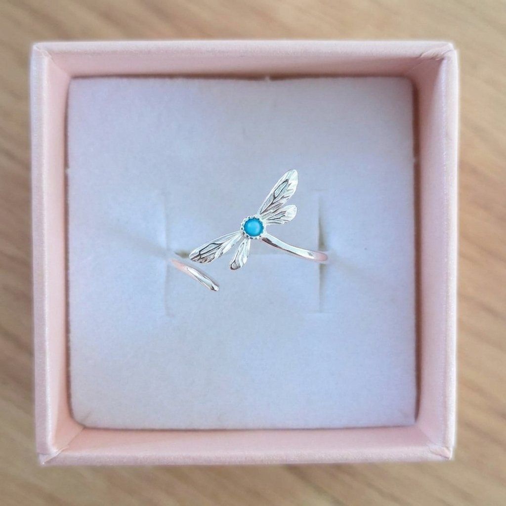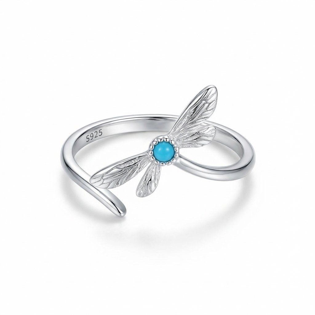 Stříbrný prstýnek „Vážka“ s tyrkysovým kamínkem – symbol svobody a proměny