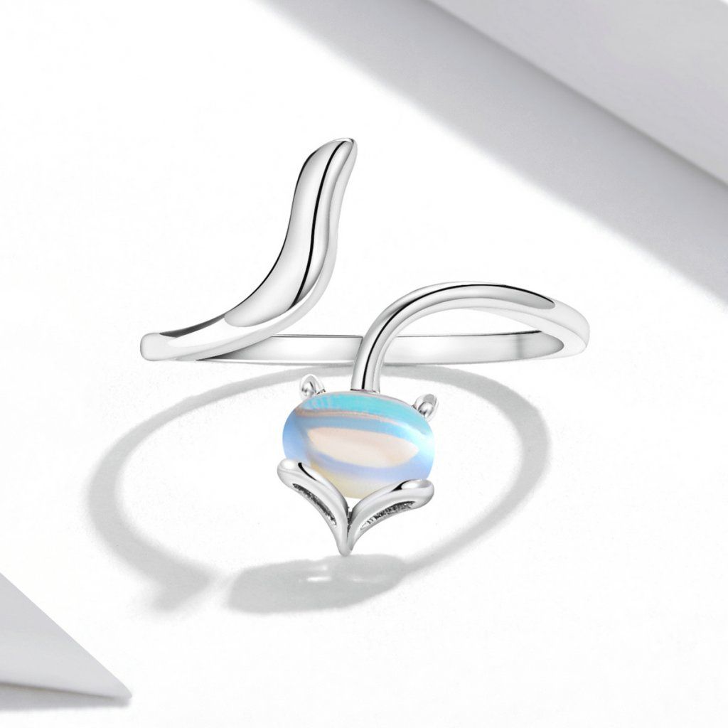 Stříbrný otevřený prsten liška - měsíční kámen