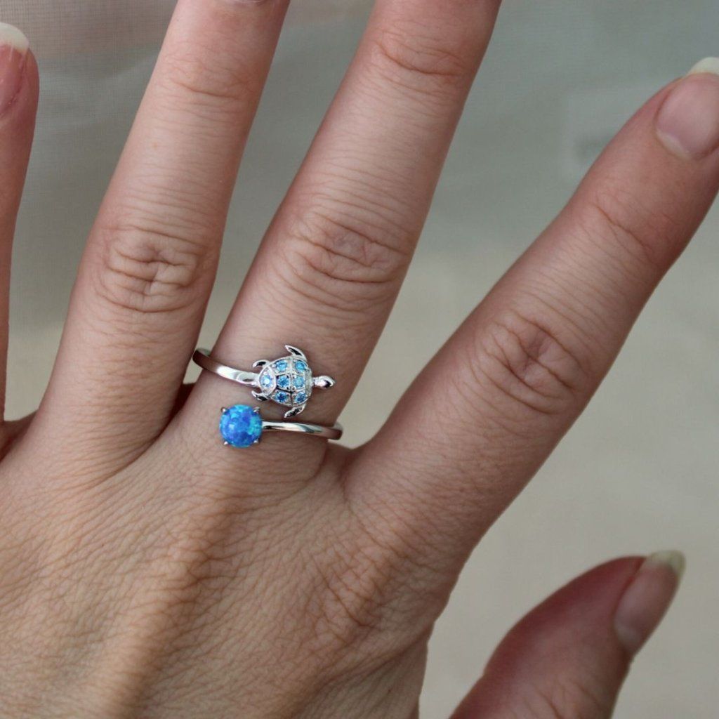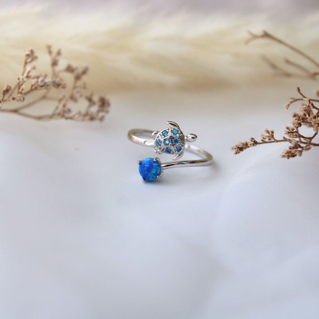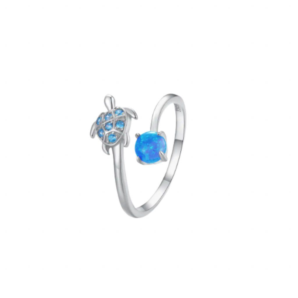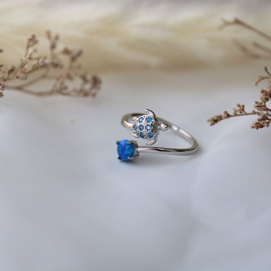 Stříbrný otevřený prsten želva s opálem