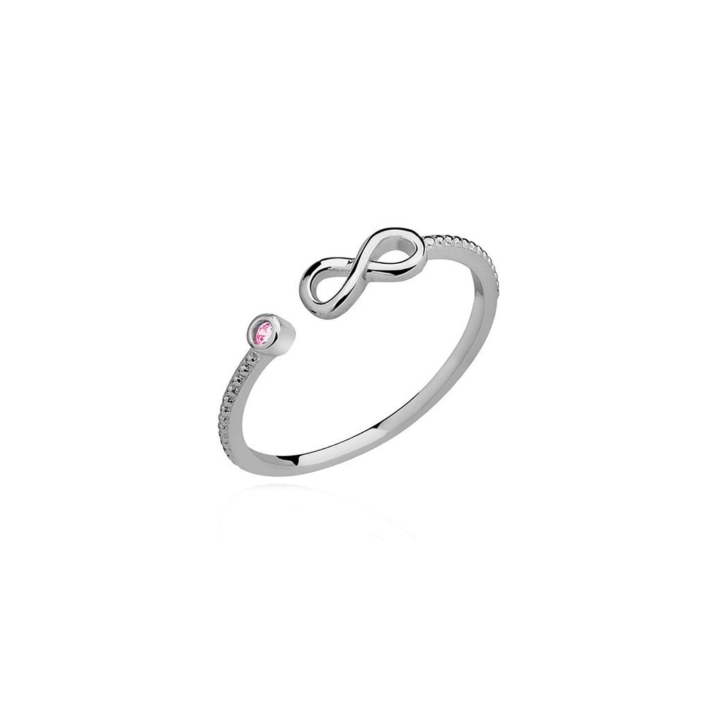 Stříbrný otevřený prstýnek nekonečno - růžový zirkon
