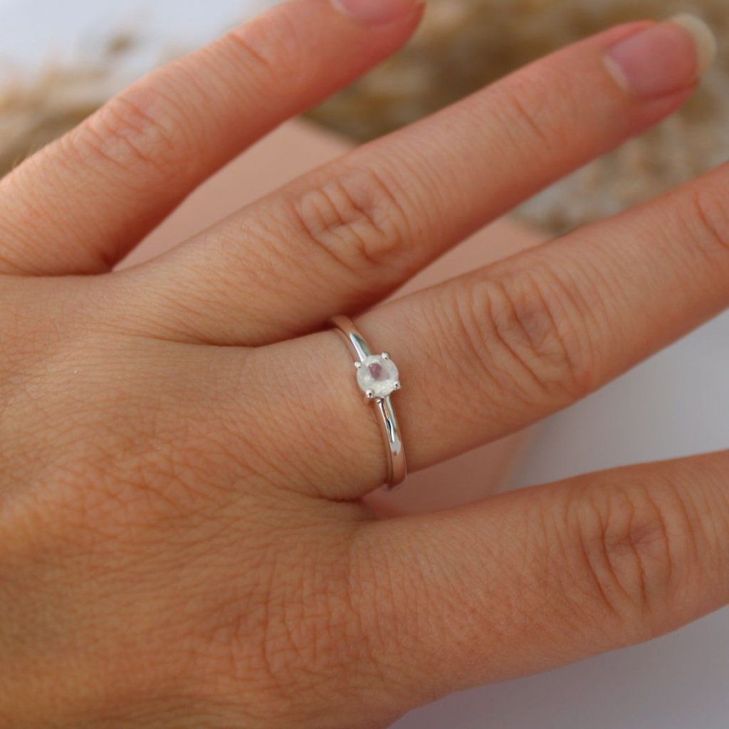 Materiál: rhodiované stříbro (Ag 925), kombinace s pravým měsíčním kamenem.