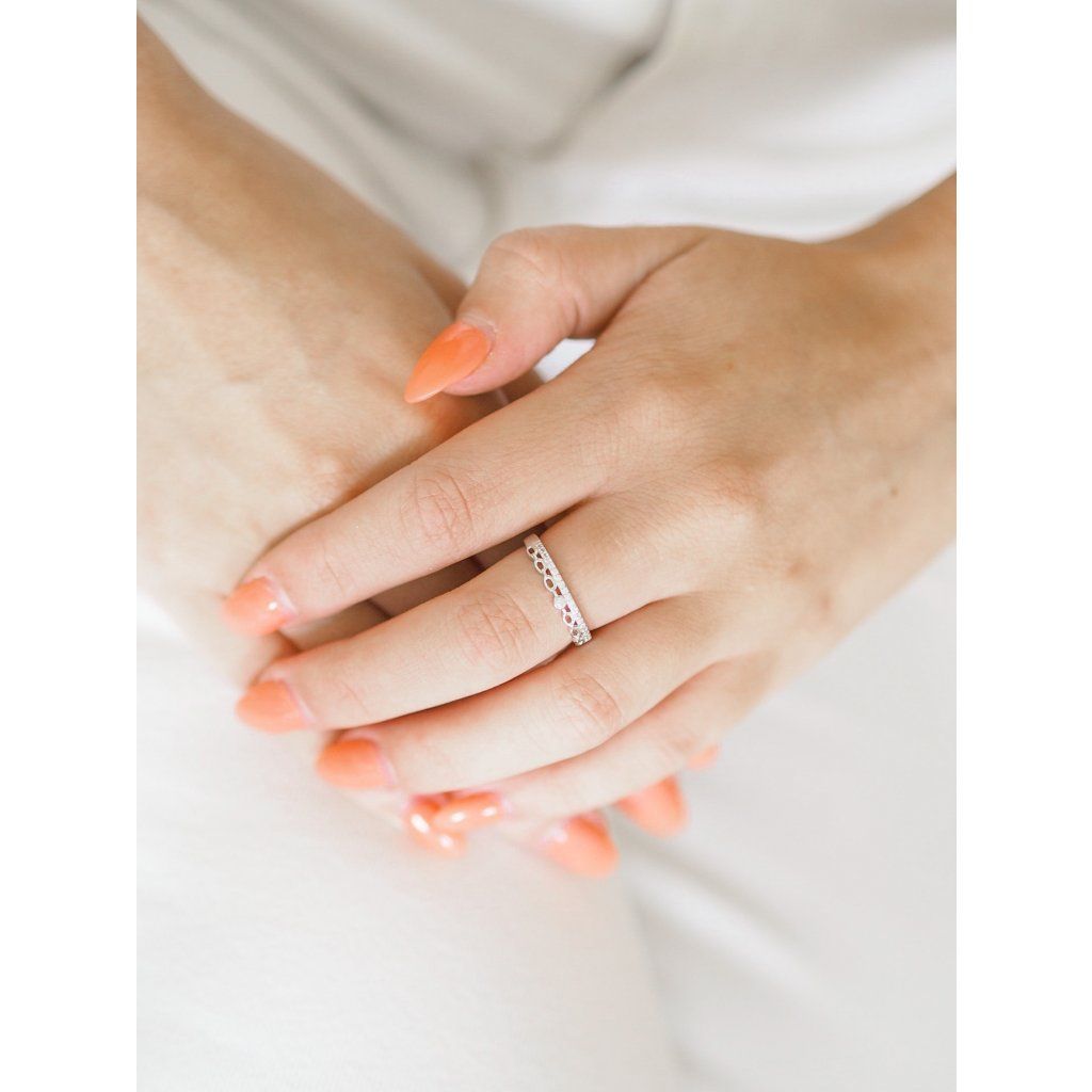 Stříbrný prsten s drobným řetízkem - zirkony
