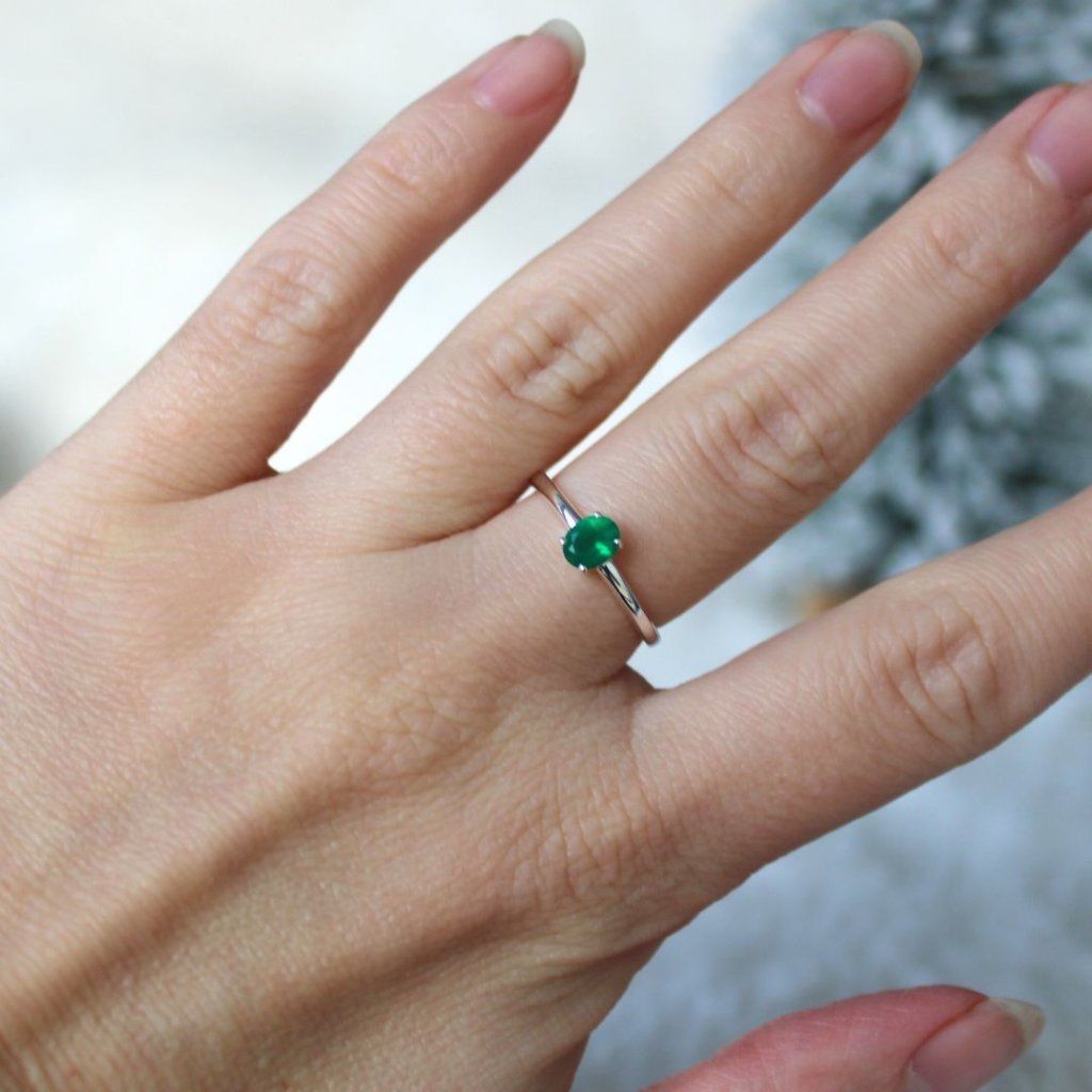 Stříbrný prsten se zeleným onyxem Něha
