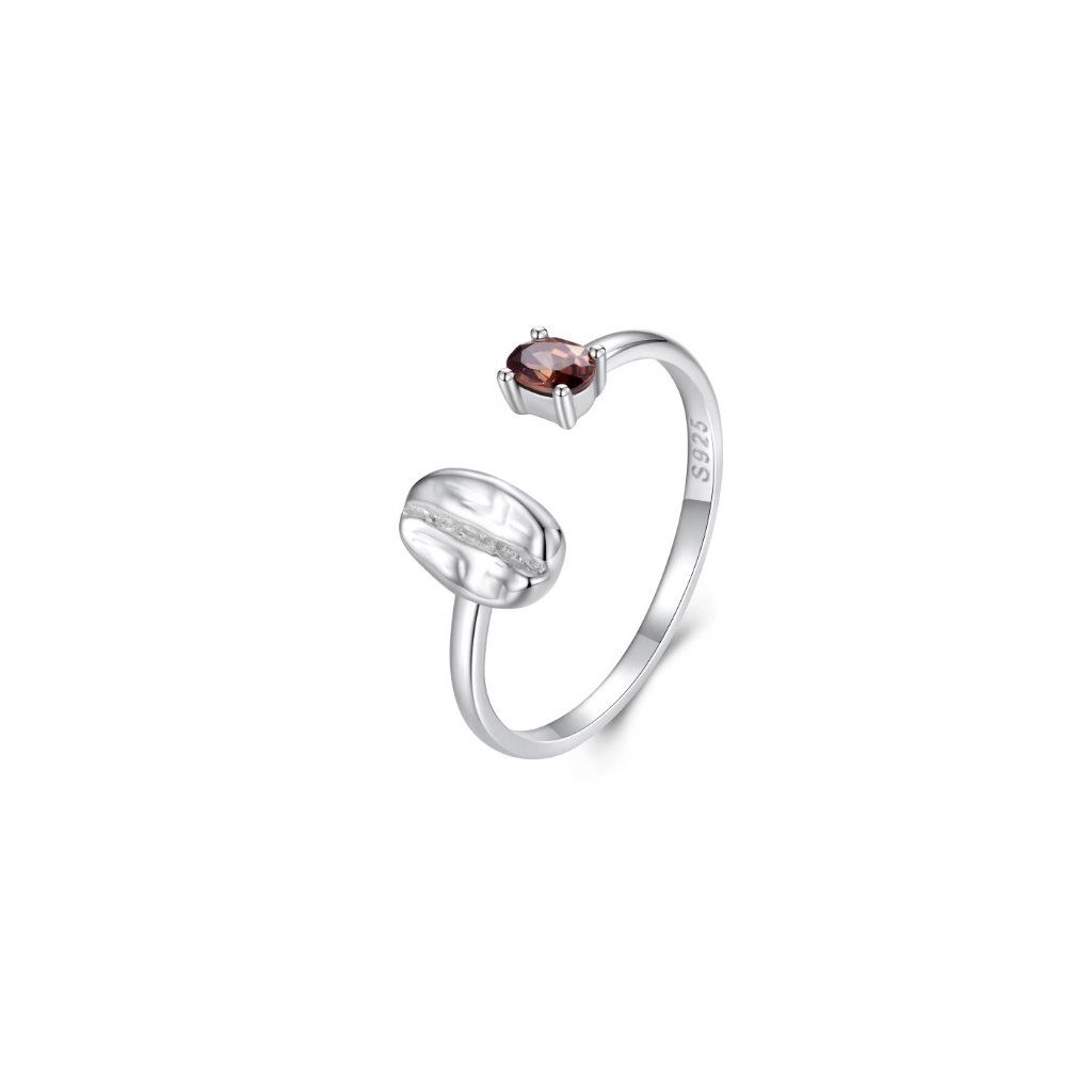 Stříbrný prstýnek s kávovým zrnkem a hnědým zirkonem – „Espresso Soul“