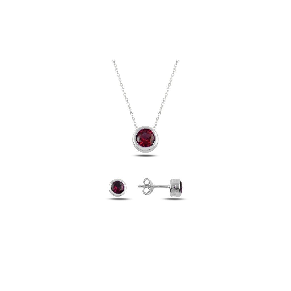 Stříbrná sada šperků pecky červené - náušnice, náhrdelník