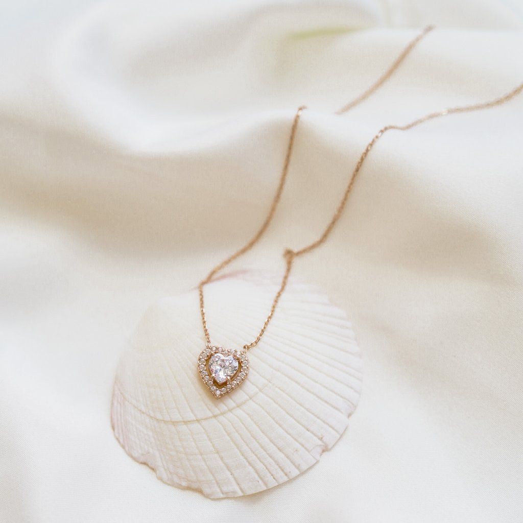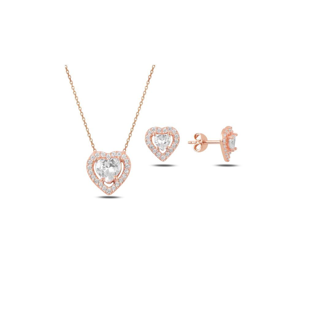 Stříbrná sada šperků srdce rose - náušnice, náhrdelník