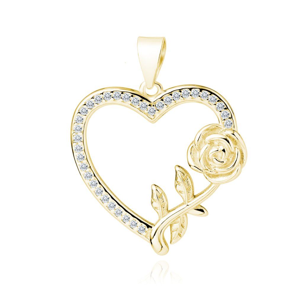 Stříbrné srdce zdobené růží gold