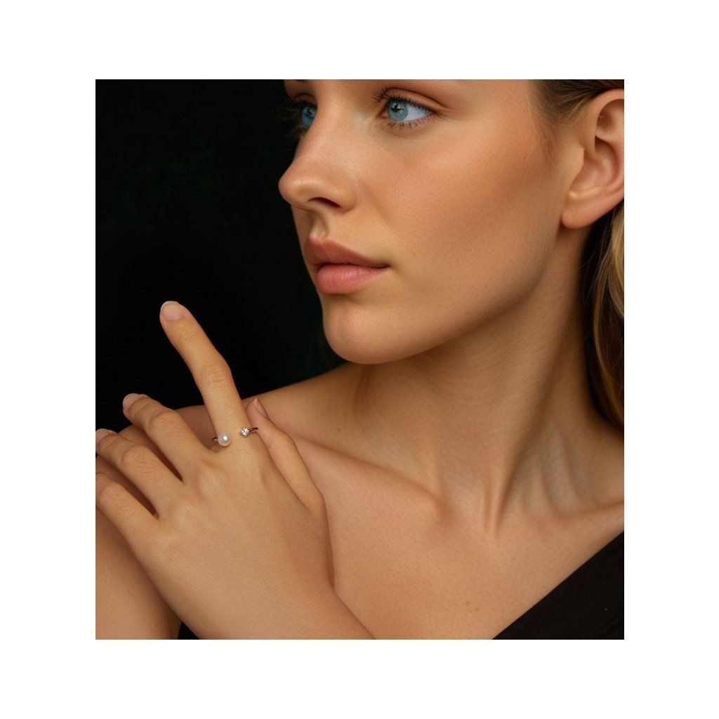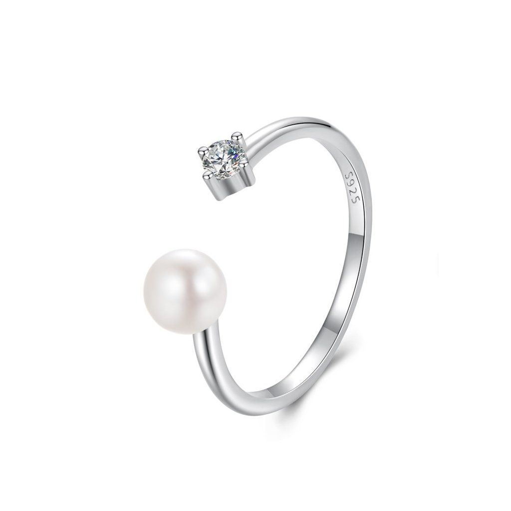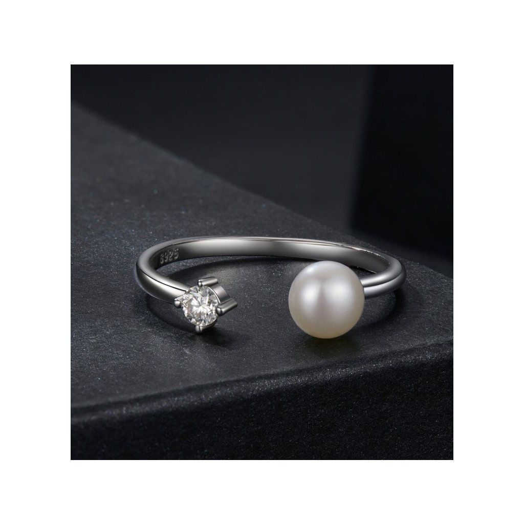 Stříbrný prstýnek s moissanitem Perla - stříbro 925 pozlacené 18K bílé zlato