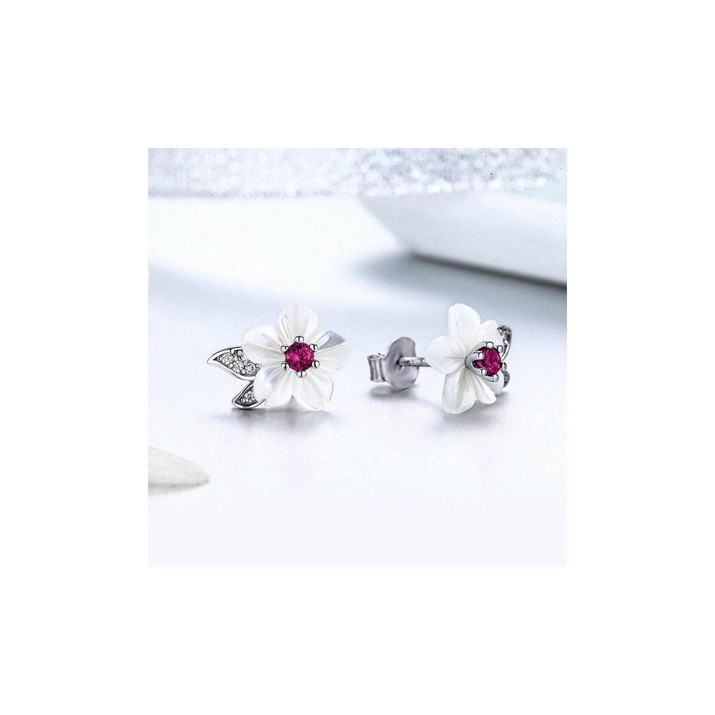 Stříbrné náušnice bílá květina