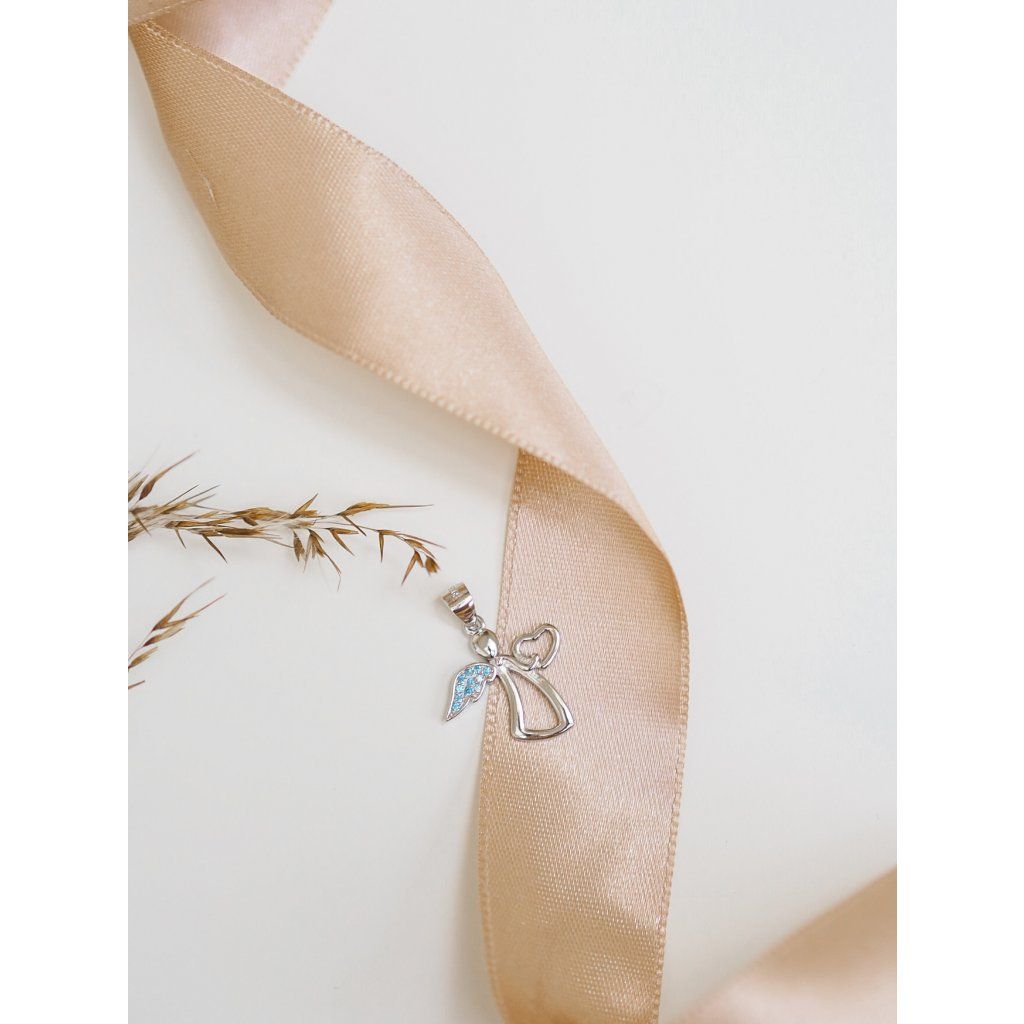 Stříbrný anděl se srdcem - modrá křídla