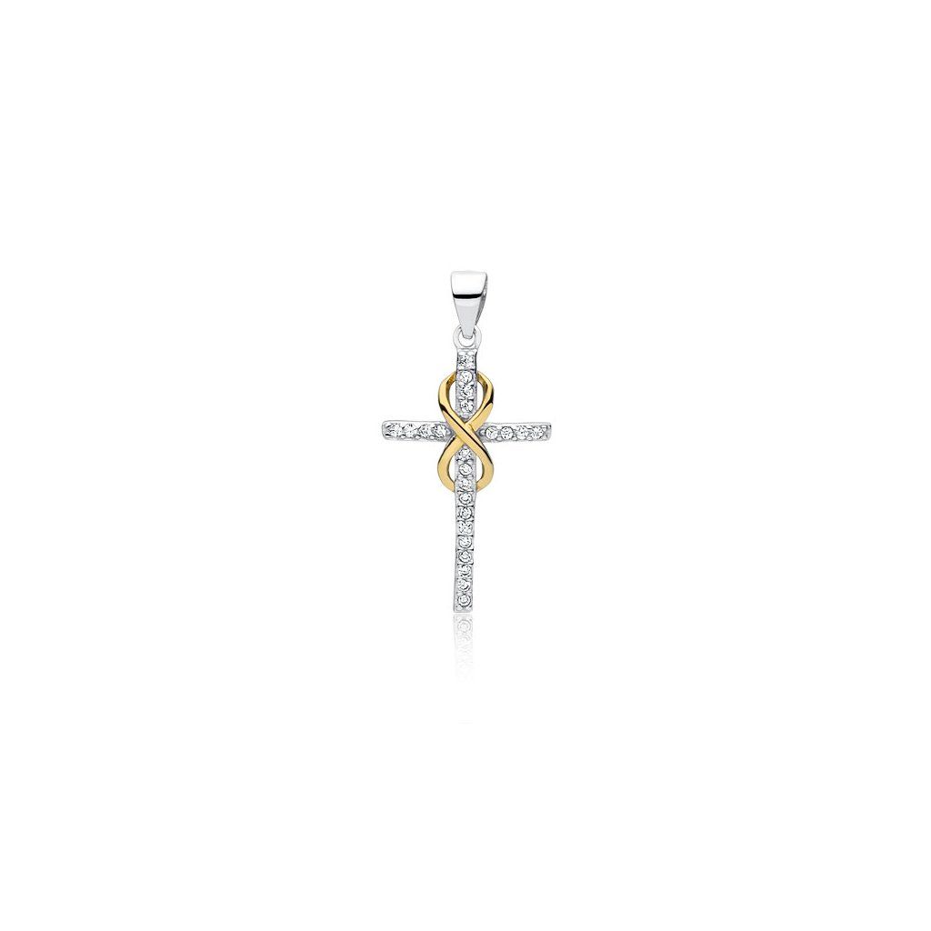 Stříbrný přívěsek křížek nekonečno se zirkony - žluté zlacení