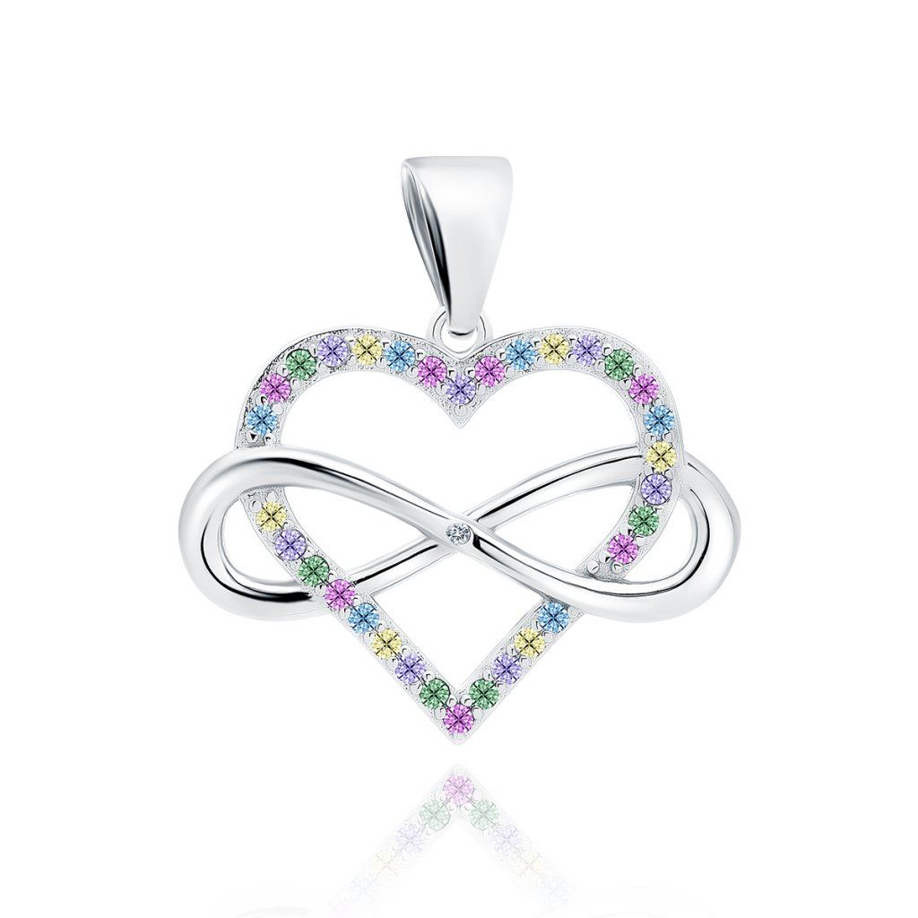 Stříbrný přívěšek srdíčko propletené nekonečnem rainbow